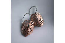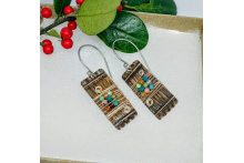 Copper fold formed and hammered rectangle earrings with silver beaded wire wrapping