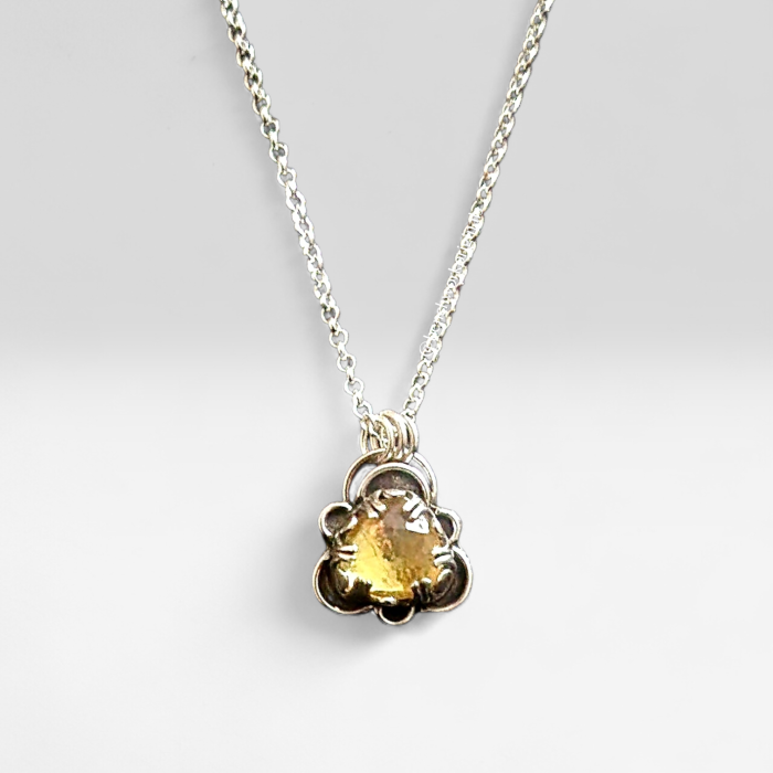 This triangular rose-cut citrine sparkles like a tiny beacon of sunlight. The entire pendant is slightly over a half-inch square, yet it makes a significant impact.